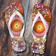 Colourful artistic design flip flops in a mandala mosaic style.