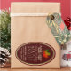 Maple syrup is printed on a dark red label in a chiseled metallic gold font and a wide gold gradient border surrounds this elegant maple syrup label. A beautiful tri-coloured autumn sugar maple leaf is displayed at the top of the label. The Grade is written in an elegant script font, and editble text below reads " Wood Fired - Local" and "Sustainable Produced in (City and Town)" Add your net weight.