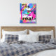 This is a very colourful, abstract, maximalist design art work that questions what is real. Maximalist design is predicated on the theory that more is more. Sometimes in this society we are bombarded by so much information, it's hard to tell what is real or fake, truth or lies. We look deeper only to be inundated with more of the same. Where are we going as a society is a good question. The print is on quality stretched canvas with bright royal blue around each of the canvas sides. Geometric shapes and gradient spheres intermingle with bold text to bring focus to the central image of the eye. I think I will name the piece simply, "What's Real?"
