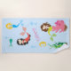 Colourful girl's beach towel done in pale blue with cartoon graphics of three mermaids and other underwater life. Personalize the pink text to suit your needs. Great gift idea for any young girl.