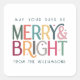 Colourful Merry and Bright Cute Retro Stars Holiday Square Sticker