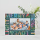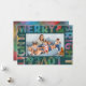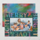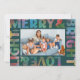A rainbow of festive hues light up this teal, modern text frame holiday card with the wording "Merry & Bright Love & Light." This colourful seasonal greeting card features simple and easy to edit family name text and space for your best landscape photo of the season. The matching backer adds to the feeling of jubilation but can be replaced with another photo or remove it and add more personalized text for a longer message to send to family and friends.
