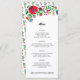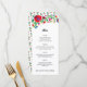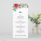 This beautiful and colourful wedding menu has easy to edit text boxes, a colourful, modern take on traditional Mexican embroidery, and the long skinny format that is easy to tuck into folded napkins.