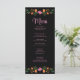Create a captivating dining experience with our "Colourful Mexican Floral Fiesta Wedding Menu Card" against a striking black backdrop. This menu card showcases vibrant hand-painted watercolor flowers in shades of orange, red, and purple, embodying the vivacious spirit of Mexico. The elegant dark text stands out against the bold background, presenting your curated menu offerings with sophistication. Elevate the ambiance of your wedding reception with this chic and festive menu card, combining visual allure and functionality for a memorable celebration.