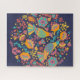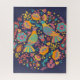 Colourful Mexican Folk Art Birds and Flowers Blue Jigsaw Puzzle