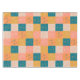 A cute and colourful retro mid century modern patchwork pattern in a fun vintage colour palette of teal, mustard, and coral.