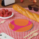 Colourful Modern Abstract Orange and Hot Pink Part Paper Plate