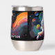 Colourful Modern Astronaut Space Personalized Name THermal Wine Tumbler features an astronaut floating though outer space with colourful planets and swishes and personalized with your name in modern script typography. Perfect as a gift for space lovers, family and friends for birthday, Christmas, holidays, Father's Day, brother, husband, partner, best friends, work colleagues and more. Designed by ©Evco Studio www.zazzle.com/store/evcostudio