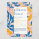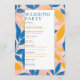 Celebrate your special day with this vibrant wedding program featuring a lively botanical design. The border showcases bold blue, golden yellow, and blush pink leaves, creating a cheerful and artistic frame around your ceremony details. The clean white centre highlights the wedding party and order of ceremony in a modern serif font, with names and headings alternating between classic blue and warm golden yellow for a dynamic, contemporary look.