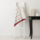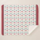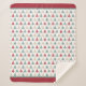 This Holiday theme sherpa blanket features a colourful pattern of red, green, and gold modern design Christmas trees. The images are placed on a white background, with a matching red border at top and bottom. Festive! Pattern design credit to https://www.etsy.com/shop/ephrazydesign.