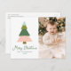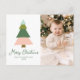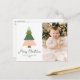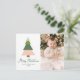 Modern photo Christmas postcard featuring an illustration of a Christmas tree in shades of green and blush pink. "Merry Christmas" is displayed in a whimsical green script with your name and year shown below. Personalize the postcard by adding your favourite vertical photo. The postcard reverses to display your return address and personal message.