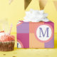 This stylish custom wrapping paper features a vibrant, colourful, modern design. Each corner features a different colour, which together resembles a summer sunset. Pink, coral, lavender, and yellow frame a sample monogram initial in the centre. You can personalize the gift wrap to include your own custom initial or other text.