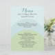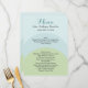 Stylish wedding reception menu, done in rounded bands of aquamarine, aqua and pale green. Personalize the dark grey text for your wedding reception.