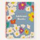 A scatter of modern, illustrated flowers in bold and feminine colours of ivory, yellow, orange, violet and teal pop against a dusty blue background making this notebook an ideal accessory for taking notes, journalling, school, work or as a diary. Personalize the two coordinating coloured text boxes on the front with a name or school subject and the text on the back with contact information if the notebook is lost and then found.