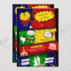 Celebrate your wedding in style with this aesthetic fun modern comic story book. The wedding invitation is colourful and tells a retro comic story with speech bubbles. It shows rings, white dove, church, cake and a wedding couple silhouette. Personalize it with your details, your monogram for your extraordinary cartoon celebration.