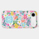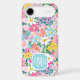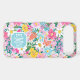 Customize this gorgeous modern colourful flower garden of flowers in pink, blue, orange, yellow and white iPhone 17 air case with your your initials in a modern CAP font in white on blue. It's so vibrant and happy!