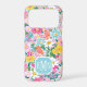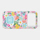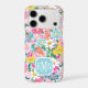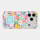 Customize this gorgeous modern colourful flower garden of flowers in pink, blue, orange, yellow and white iPhone 17 pro case with your your initials in a modern CAP font in white on blue. It's so vibrant and happy!
