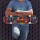 This modern design features a tiled pattern of colourful geometric and abstract patterns #mosaic #tiled #textured #pattern #masculine #feminine #girly #stylish #chic #trendy #customgifts #sports #outdoor #skate #skater #skateboard #skateboards #skateboarding #fun #cool #custom #christmas #birthday #giftsforher