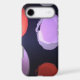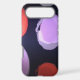 Dark Background: The dark backdrop, likely black or a very dark grey, provides strong contrast, allowing the bright colours of the polka dots to pop prominently.