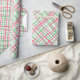Colourful Modern Preppy Abstract Geometric Pattern Wrapping Paper Gift Wrap features a colourful green and pink striped pattern on a white background.