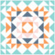 This fun design features a modern geometric barn quilt block in a fresh colour palette of cute retro style colours including turquoise, orange, navy blue, and blush pink.