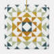 Colourful Modern Quilt Block Geometric Earthy Teal Green and Yellow Christmas Ornament