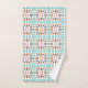 This stylish bath towel set features a modern geometric barn quilt block pattern in a fresh colour palette of cute retro style colours including turquoise, orange, navy blue, and blush pink. Great gift idea.