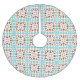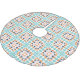 This stylish holiday Christmas tree skirt features a modern geometric barn quilt block pattern in a fresh colour palette of cute retro style colours including turquoise, orange, navy blue, and blush pink. Great gift idea.