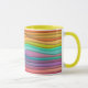 Brighten your day with this colourful, cheerful and contemporary rainbow pattern mug! Flowing stripes of red, orange, yellow, green, blue and purple create a beautiful motif that will add a modern splash to your daily coffee or tea routine. Handle and interior are yellow -- or personalize with a different colour of your choosing. Fun and original!