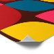 Cool, unique, trendy, urban abstract illustration pattern art made with colourful drop like curvy geometric shapes in flower abstraction. Colourful, modern, playful graphic design artwork in red, pink, yellow and blue colours.