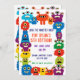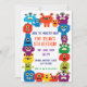 A cute collage of colourful monsters announce this monster birthday bash party on this kids party invitation. The back of the invitation says "Monster Birthday Bash" and features the same cute creatures as well as the child's age. Customize these kids birthday party invitations using an easy fill in the blank template provided. Or you can go wild with the font colours and styles and move things around by using the "Customize It" button.