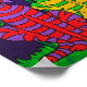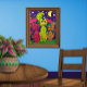 Decorate your walls in style with this unique, colourful folk art poster. In this uplifting, whimsical artwork, these three brightly coloured tabby cats are sitting in on the grass in front of a patch of exotic pink flowers beneath a crescent moon and a purple star filled night sky.