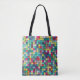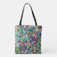 Colourful mosaic geometric squares pattern tote bag