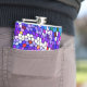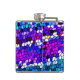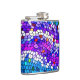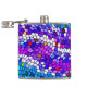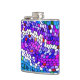 This cool flask displays a colourful mosaic tile pattern in shades of purple, pink, blue, turquoise and white.