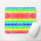 Colourful mousepad featuring a bright, symmetrical pattern of diagonal rainbow stripes and geometric shapes, evoking a vibrant and playful mood.