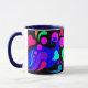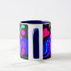 The first of 4 mugs with coloured handles and insides. The design on this one has hearts, bubbles and swirls in bold, pretty colours on a black panel. The handle and inside are navy blue.