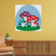 A group of three brightly coloured mushrooms. This design looks really effective on these Poster