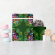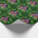 A roll of wrapping paper with colourful psychedelic mushrooms surrounded by green paisley and green mandalas.