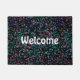 Colourful Music Notes Customizable Door Mat. Turquoise, purple, lavender, blue, green and pink musical notes in a chaotic tapestry against black. The text says welcome, but you can change it to anything you like or leave as it. A wonderful entrance to a musical household or makes a great gift for your favourite musician or music lover. #music #homedecor #doormat