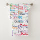 Add a name or any other word to create a stylish typographic pattern with different font styles and colours on white (custom-colour) set-of-towels