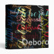 Add your name to the template to create a stylish pattern of names of different colours and font styles on a black binder
