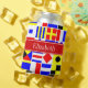 Colourful Nautical Signal Flags With Red Name Monogram Ribbon Label
