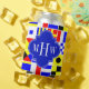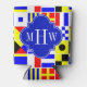 Colourful Nautical Signal Flags With 3 Initial Monogram on Royal Blue Quatrefoil