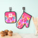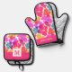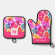 Colourful Neon Modern Flower Pattern Oven Mitt & Pot Holder Set