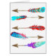 A rustic formation of arrows fletched with beautiful, bright-coloured tribal boho feathers, done in turquoise, red, lavender and violet.
