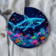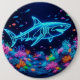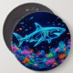 Colourful neon shark 6 inch round button