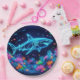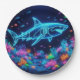 Colourful neon shark paper plate
