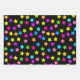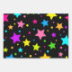 Colourful Neon Stars on Black Wrapping Paper Sheet
