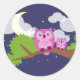 What a cute nighttime scene! A mother and baby owl sit on a branch with the moon and stars behind. This cute owl design is adorable!