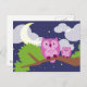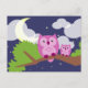 What a cute nighttime scene! A mother and baby owl sit on a branch with the moon and stars behind. This cute owl design is adorable!